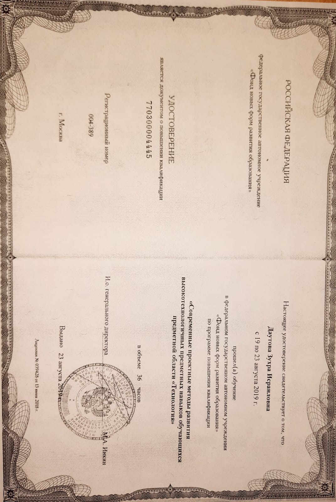 организаций, осуществляющих образовательную деятельность по имеющим