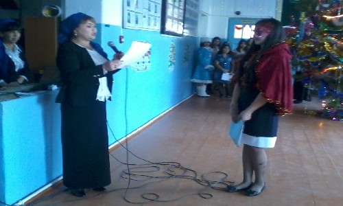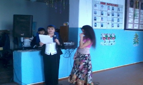 Директор школы Елманбетова Маржанат Алимхановна награждает грамотами отличившихся учеников
