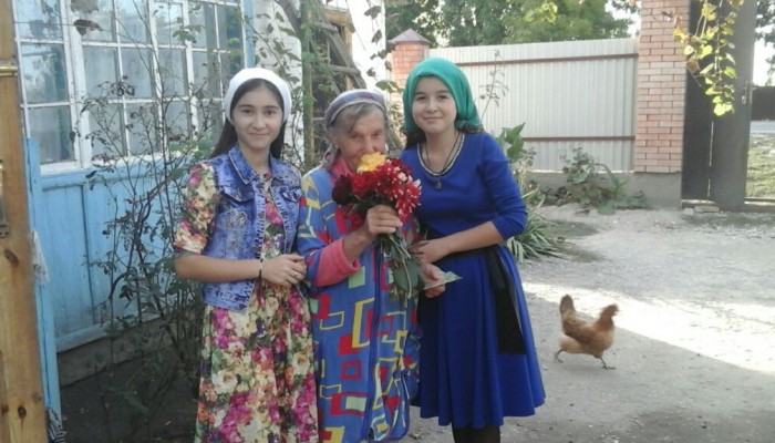 День учителя-класс.час на дому у ветерана труда Тилековой Мукминат Рахметовны