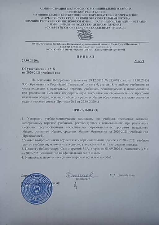 Скачать Приказ об утверждении УМК на 2020-2021 учебный год от 29.08.2020 г Скачать Справка-день Чеченской Республики 6 сентября 2020 г. Скачать Справка-день рождения А.Х. Кадырова от 12.09.2020 г. Скачать Справка-день Государственного флага РФ-август 2020 Скачать Список учебников, используемых в образовательном процессе в 2020-2021г. в МБОУ "Сары-Суйская СОШ" Скачать Перспективный план развития библиотеки на период с 2019 по 2023 г. Скачать План работы библиотеки на 2020-2021 учебный год Скачать План работы школьной библиотеки на 2019-2020 учебный год Скачать Анализ работы за 2018-2019 учебный год. Скачать Справка - Неделя школьной библиотеки с 19.11 по 25.11.2019г Скачать Справка - Месячник школьной библиотеки с 01 по 30 октября 2019 г Скачать План на неделю Живая классика 2019 Скачать Справка - 100-летие Арби Мамакаева Скачать Справка - 90-летие Раисы Ахматовой Скачать Годовой отчет за 2017-2018 учебный год Скачать Справка -неделя библиотеки с 01 по 31 октября 2018 г Скачать Пресс-релиз от 27.02.2018 г. Живая классика Скачать Справка - месяц школьной библиотеки с 02 по 30 октября 2017 г |