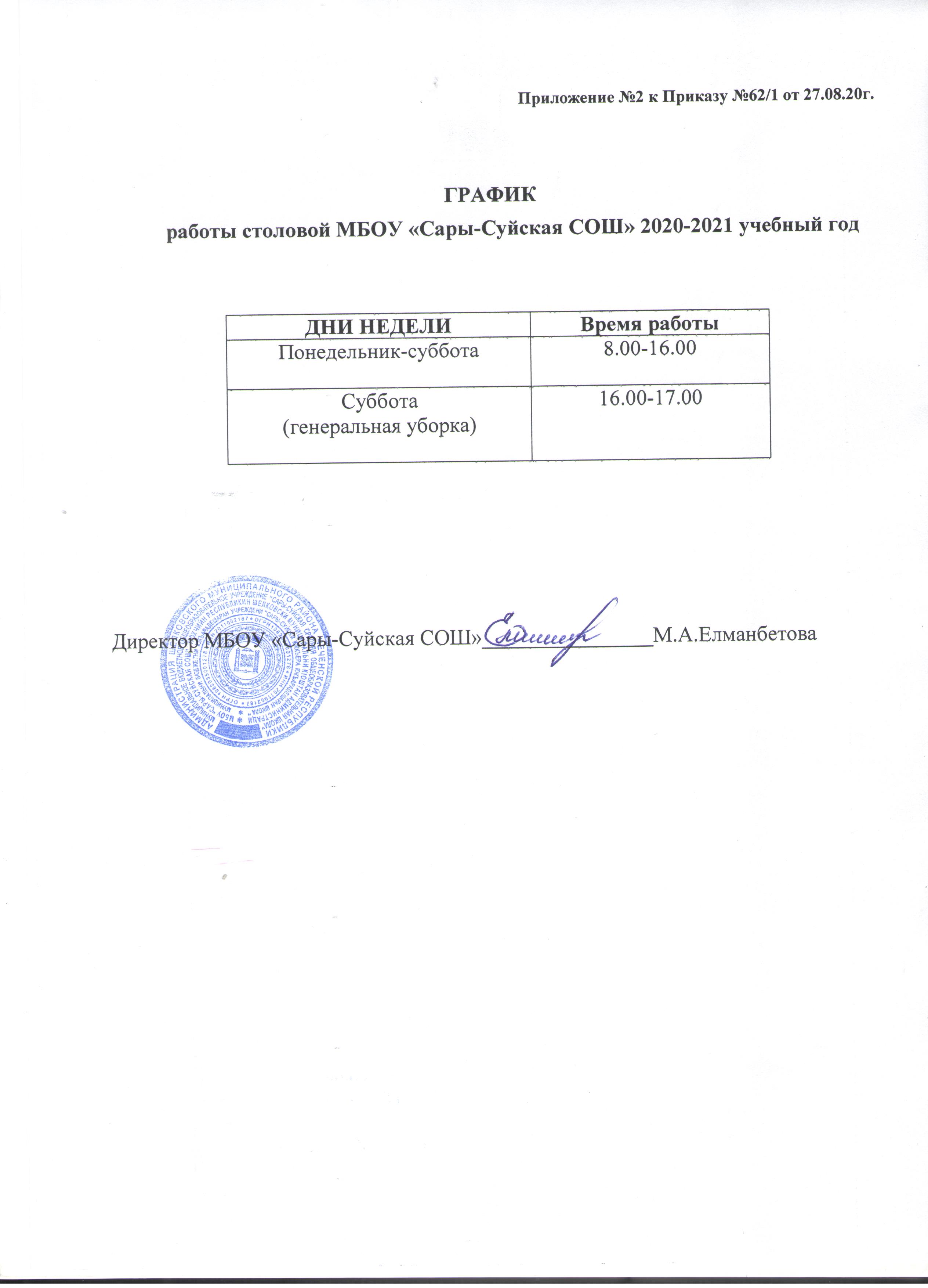 Питание в школеСкачать Двухнедельное меню питания школьников МБОУ "Сары-Суйская СОШ" от 22.02.2021 г. Скачать Двухнедельное меню питания школьников МБОУ "Сары-Суйская СОШ" от 08.02.2021 г Скачать Приказ №104 от 12.12.2020 г Об утверждении примерного меню на неделю Оперативный штаб по контролю за организацией и качеством бесплатного питания для обучающихся, осваивающих образовательные программы начального общего образования Телефон горячей линии: 8(8712) 22-38-85 Рабочее время: с 9.00 до 18.00 (понедельник-пятница)