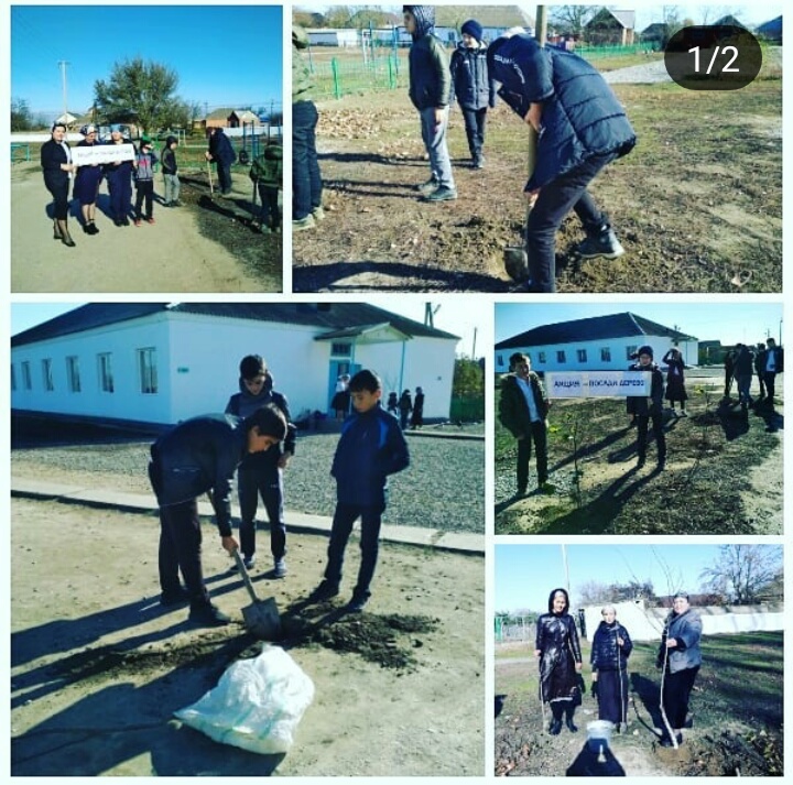 В целях озеленения территории школы, 16 ноября совместно с ЕДЮО "Юные Кадыровцы" проведена акция "Посади дерево". По всей территории посажено около 50-ти фруктовых саженцев.