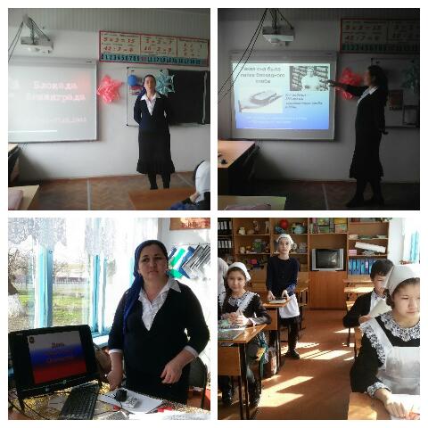 В 7 «а» классе классный час назывался «Дни воинской славы России». Новикова М.А. познакомила ребят с законом об утверждении памятных дат в Российской истории. Особое внимание было уделено снятию блокады Ленинграда – 27.01.1944г. Просмотрели презентацию «Блокадный Ленинград».