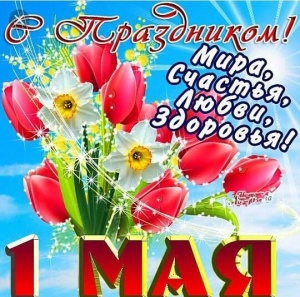 Поздравляем всех с первым майским днем, с праздником вдохновенного и созидательного труда! Пусть любое дело, за которое Вы беретесь, доставляет Вам удовольствие и радует своими результатами, желаем Вам успеха, везения и дружеской поддержки окружающих в любом начинании.