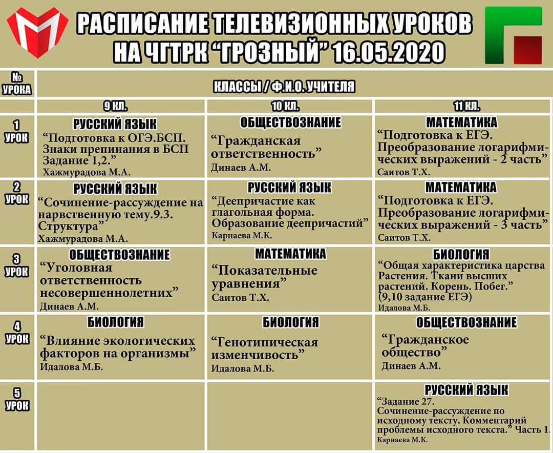 Уроки проходят с 9:00 в эфире ЧГТРК «Грозный».