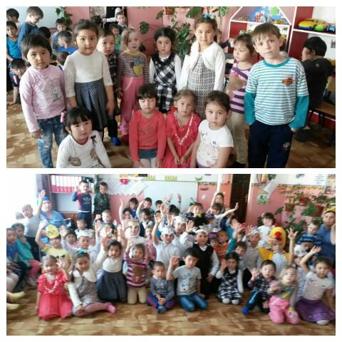 А вот 11 класс вместе с классным руководителем Сарсенбиевой К.Т. побывали в гостях у детишек в деском саду «Солнышко», специально для детишек приобретены массажные шарики и мячи, которым детишки очень обрадовались.