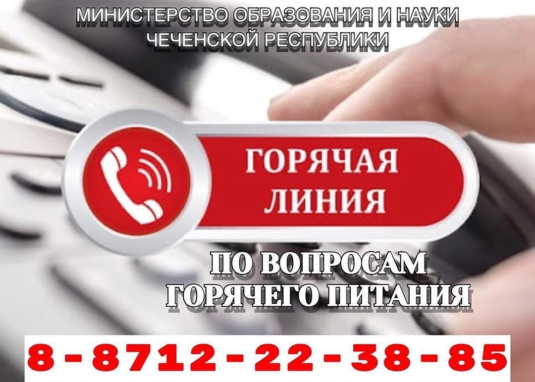 Сообщаем вам, что в Министерстве образования и науки Чеченской Республики работает горячая линия по вопросам предоставления горячего питания обучающимся начальных классов.