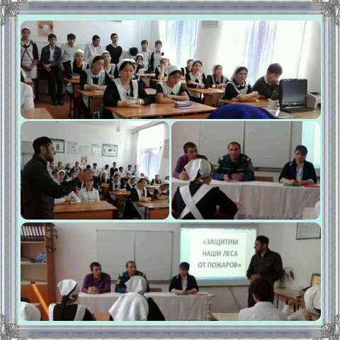 11.05.201611 мая учитель ОБЖ Темиралиев Висита Ильязович провел открытый урок в 8-х классах в соответствии с Постановлением Правительства ЧР от 23 июня 2011 г. №105 "Об утверждении Порядка действий по предотвращению выжигания сухой растительности на территории ЧР" на тему: "Сохраним лес от пожаров!"