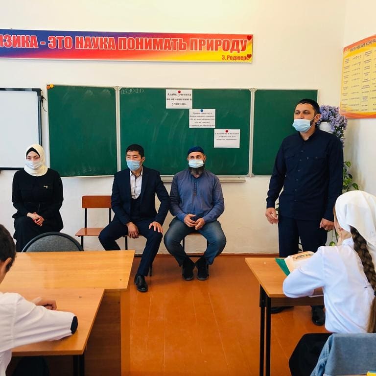Педагог ДНВ и Р Темиралиев В.И. провел беседу среди обучающихся среднего и старшего звена по теме: "Адабы ученика по отношению к учителю". В мероприятии приняли участие зам. имама Тимаралиев М.Г., зам. директора по ИКТ Тулениязов Н.З., зам. директора по ВР Даутова З.Б. и учитель иностранного языка Сулейманова А.С.