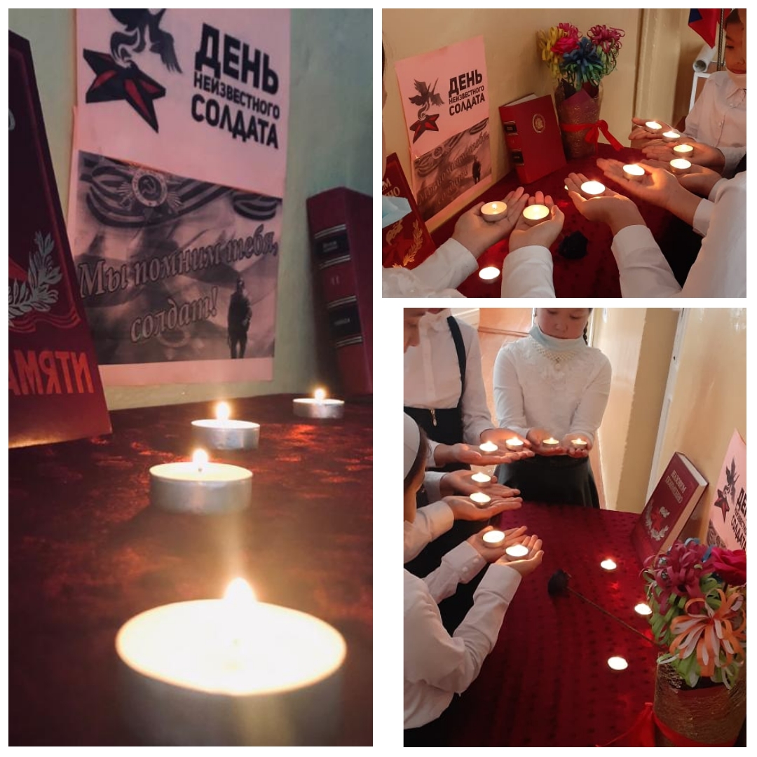 В фойе школы прошла патриотическая акция «Огни памяти!» посвященная Дню Неизвестного солдата. Школьники зажгли свечи, отдавая дань глубокого уважения великому подвигу лучших сынов Отечества, павших на полях сражений.