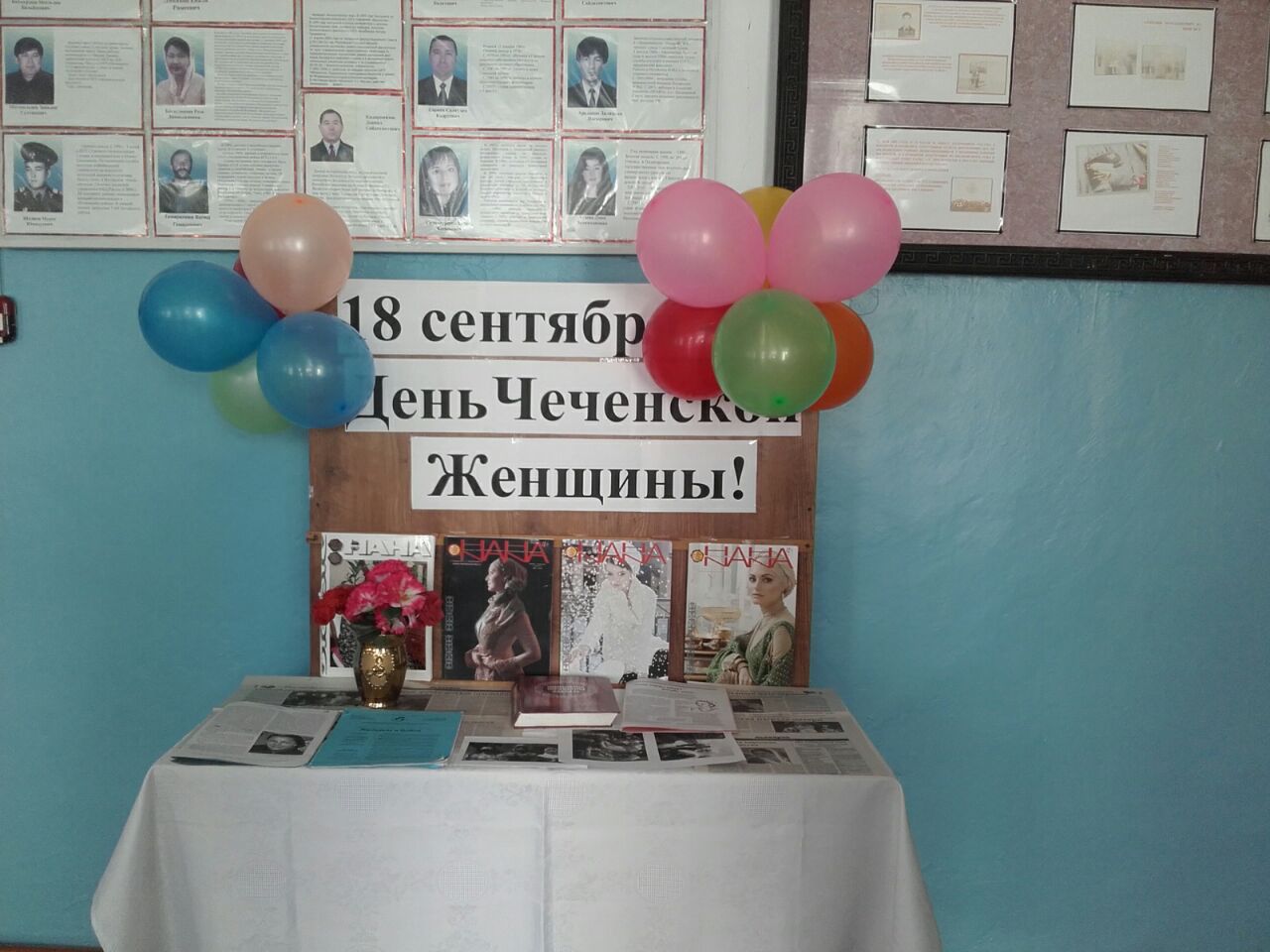 Заведующая школьной библиотекой Салимгереева Марина Алиевна провела книжную выставку, посвященную "Дню чеченской женщины".