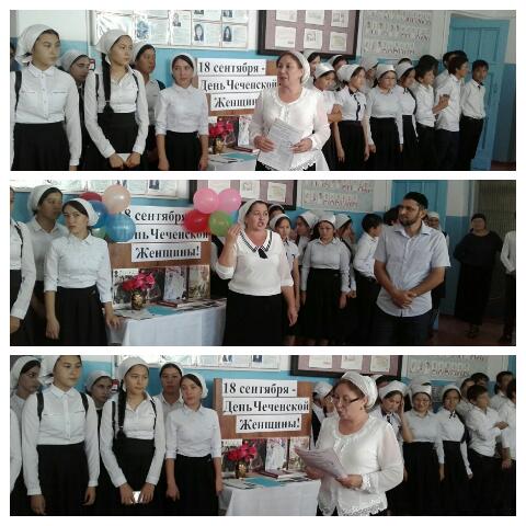 17.09.2016По школе прошли мероприятия, приуроченные Дню чеченской женщины. В связи с этой датой провели торжественную линейку. Выступила заместитель директора по ВР Даутова Зухра Исраиловна.