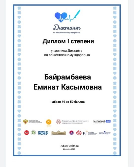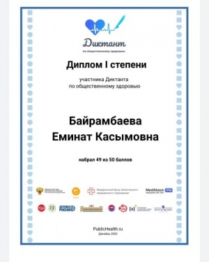 Министерство здравоохранения Российской Федерации в рамках реализации федерального проекта «Укрепления общественного здоровья» национального проекта «Демография» и в целях повышения общей грамотности населения в сфере профилактики неинфекционных заболеваний, а также популяризации здорового образа жизни среди всех групп населения проводил Всероссийский диктант по общественному здоровью. В онлайн-диктанте участвовала и наша школа.