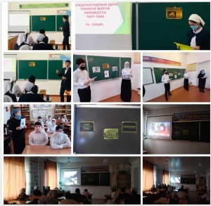 С 18-31 января в Российской Федерации проходит ежегодная Неделя Памяти Жертв Холокоста, приуроченная к 27 января - международному дню Памяти Жертв Холокоста и 76-летней годовщине освобождения лагеря смерти Аушвиц (Освенцим) силами Красной Армии. Классными руководителями были проведены мероприятия, посвященные Памяти Жертв Холокоста.