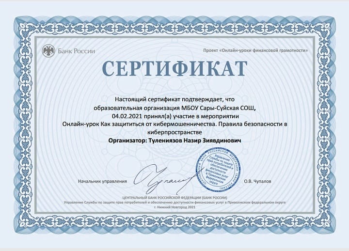 Наши педагоги и учащиеся продолжают принимать участия в проекте "Онлайн-уроки финансовой грамотности", которые помогают старшеклассникам из любой точки России получить равный доступ к финансовым знаниям, предоставляет возможность «живого» общения с профессионалами финансового рынка, способствует формированию принципов ответственного и грамотного подхода к принятию финансовых решений.