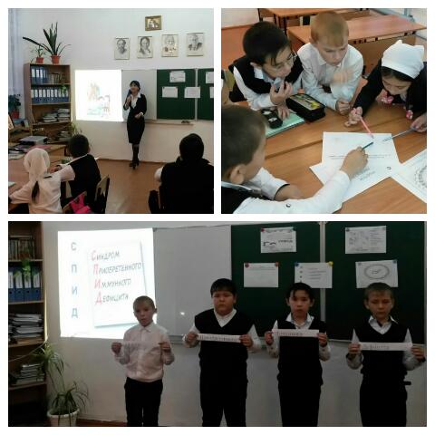 Руководитель 4 "б" класса Тилекова Регина Салибиевна, при изучении темы по СПИДу, показала своим малышам презентацию с мультигероями. Поработали в группах, составили синквейн по теме.