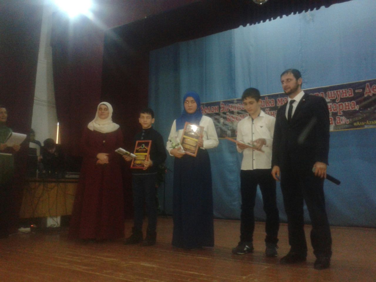 28.12.201628 декабря 2016 года в МБОУ "СОШ №3 ст. Шелковская" состоялся финал викторины "Сунна Пророка Мухаммада (с.а.с.). Команда нашей школы ( в числе Сулейманова Сайхана, Орсабиева Заурбека, Айтугановой Земфиры и Сулеймановой Линды) под руководством преподавателя по ДНВ Темиралиева В.И. заняла 3 место. Все победители были награждены дипломами и подарками.