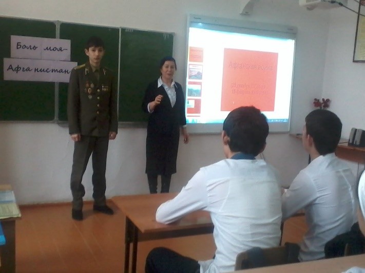 15 февраля – День памяти воинов-интернационалистов, тех, кто воевал в Афганистане. 15 февраля 1989 года – начало вывода советских войск из Афганистана. С тех прошло 26 лет. Чтобы познакомить детей с событиями Афганской войны, по школе был составлен план. Согласно плану были проведены различного рода мероприятия.С 9 февраля по 15 февраль в школе «кипела» работа. В понедельник, на рабочей линейке обучающихся познакомили с планом на неделю. Начали с того, что все классы с 5-11 выпустили плакаты по теме «Афганистан болит в моей душе».Ученики школьного самоуправления под руководством ЗВР выпустили стенд «Солдат войны не выбирает», откуда учащиеся узнали, что декабрь-начало трагедии, вошедшей в историю нашей страны как Афганская война. В конце декабря в Афганистан по договоренности с руководством были введены советские войска. Поводом стала просьба президента Афганистана Хафизуллы Амина об оказании ему военной помощи для борьбы с антиправительственными силами… По всем классам проведены классные часы по темам: «Локальные войны»; «Мы память бережно храним»; «Дорогами Афганистана»; «Афганистан наша память и боль», «Рубцом на сердце лег Афганистан»…В 9 «б» классе час назывался «Боль моя – Афганистан». Кроме рассказа учителя и просмотра презентации, выступили обучающиеся. Муртазалиев Висхан был одет в форму военнослужащего того времени, девочки были в пионерской форме и являлись олицетворением прошлого. Прочитали стихи, исполнили песню «Домой, на Родину!».Обучающиеся объединения «Тамирлан» собрали материал «Выпускники нашей школы, служившие в Афганистане». Экскурсию в сельскую библиотеку со своими малышами (4-ый класс) совершила Тулумбаева Х.К. Их встретила Дагирова М.М. (библиотекарь сельской библиотеки). Она ознакомила с выставкой книг «Война в Афганистане». В доступной форме рассказала о прошлом, о смелых и отважных воинах-интернационалистах.Библиотекарь школы Салимгереева М.А. собрала материал по теме «Выпускники нашей школы служившие в Афганистане». 2400 жителей нашей Республики участвовали в боевых действиях того времени. Более 320 награждены орденами и медалями, из них 18 – посмертно. Среди воевавших были и наши односельчане, это Арсланов Д., Агаспаров А.,Картакаев А., Шинавов Т., Алимгереев А., Мусаев З., Вакаев Т. и другие.Она-же организовала чтение по книге Аликсиевич «Цинковые мальчики». Книга была скачена и интернета. Перечитать книгу за раз невозможно, и поэтому Марина Алиевна зачитывала отрывки. Здесь воспоминания ребят служивших в Афганистане.Руководитель ШМО Муслимова М.К и учитель литературы Новикова М.А. организовали конкурс стихов «Афганистан – боль моей души». В конкурсе приняли участие 34 ученика. Читались стихи «Письмо мамы», «Летом 88 года», «Слова солдата», «Я вернулся», «Как тяжело, когда хоронят милых», «Я не прощаю вас», «Исповедь Афганца» и другие. На мероприятие пригласили библиотекаря села Дагирову М. Она рассказала о воинах Афганцах села. Маржанат Алимхановна (директор школы) присутствовала на мероприятии. Все присутствующие почтили минутой молчания память воинов- афганцев, погибших на этой войне.Все члены жюри высказали свое мнение, не только дети, но и взрослые прочувствовали это время, узнали, что и как было.