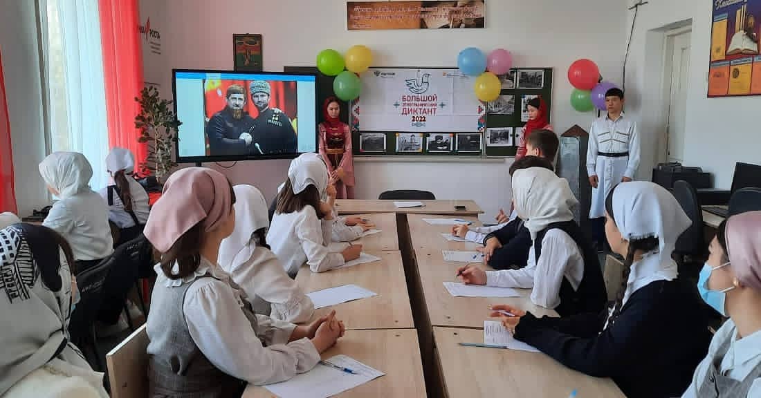 «Большой Этнографический Диктант» в Чеченской Республике проходит при поддержке Администрации Главы и Правительства Чеченской Республики, Министерства образования и науки Чеченской Республики, Министерства Чеченской Республики по национальной политике, внешним связям, печати и информации. В этой акции приняла участие и наша школа.