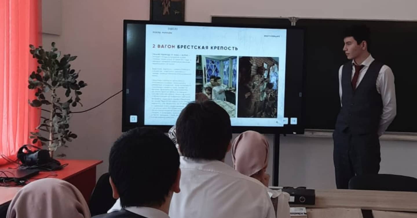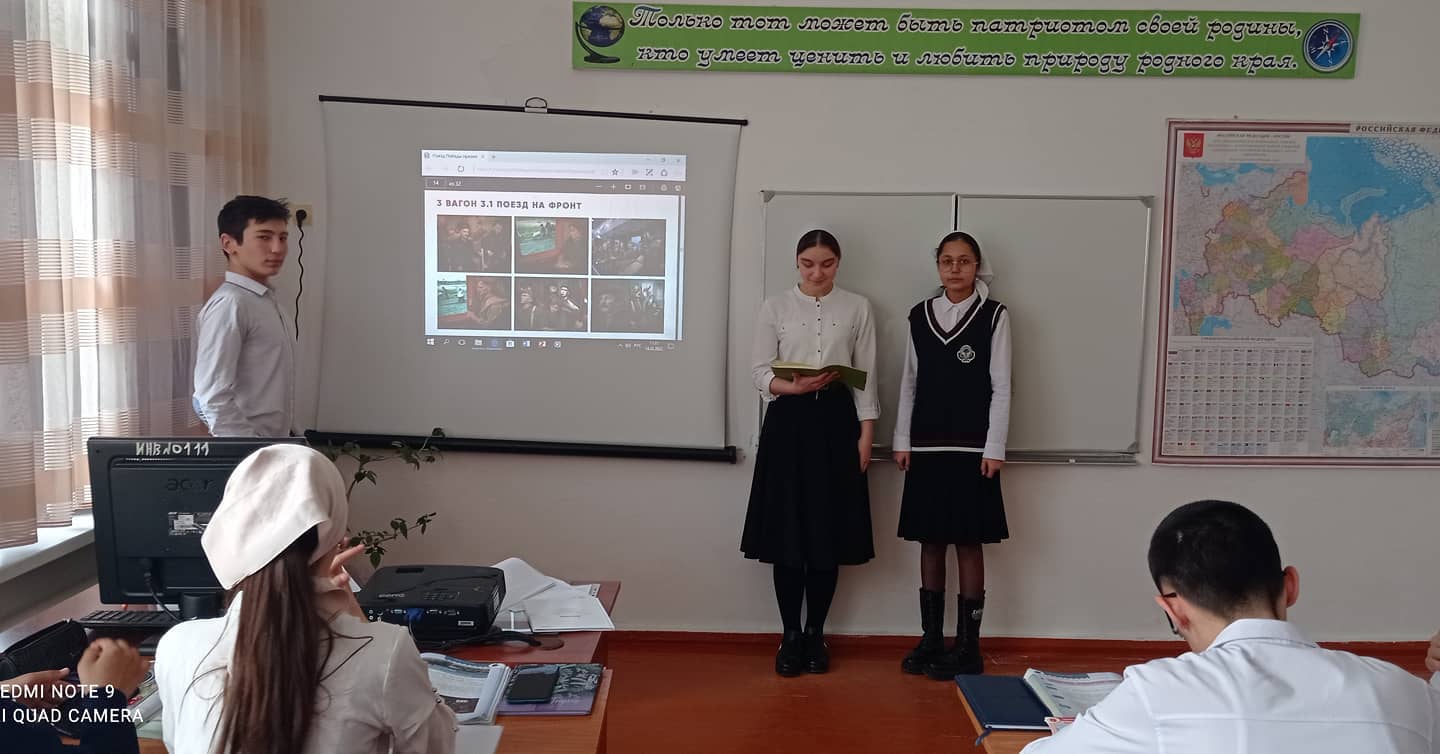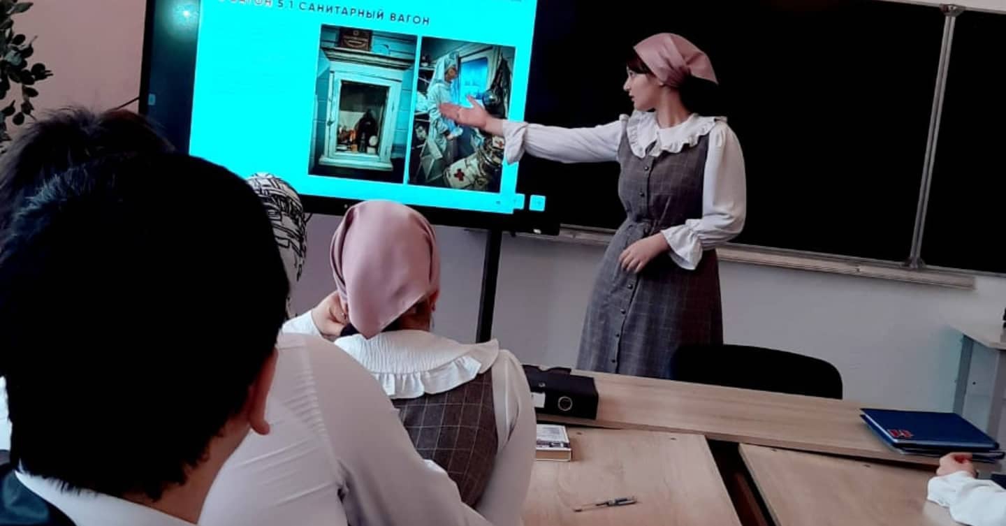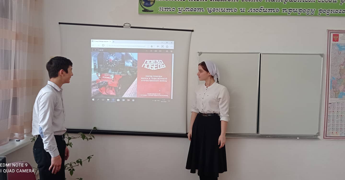 В рамках реализации просветительского проекта «Поезд Победы» Министерство образования и науки Чеченской Республики 18 февраля 2022 года в МБОУ "Сары-Суйская СОШ" проведен единый урок с обучающимися среднего и старшего звена с демонстрацией виртуального тура по экспозиции.