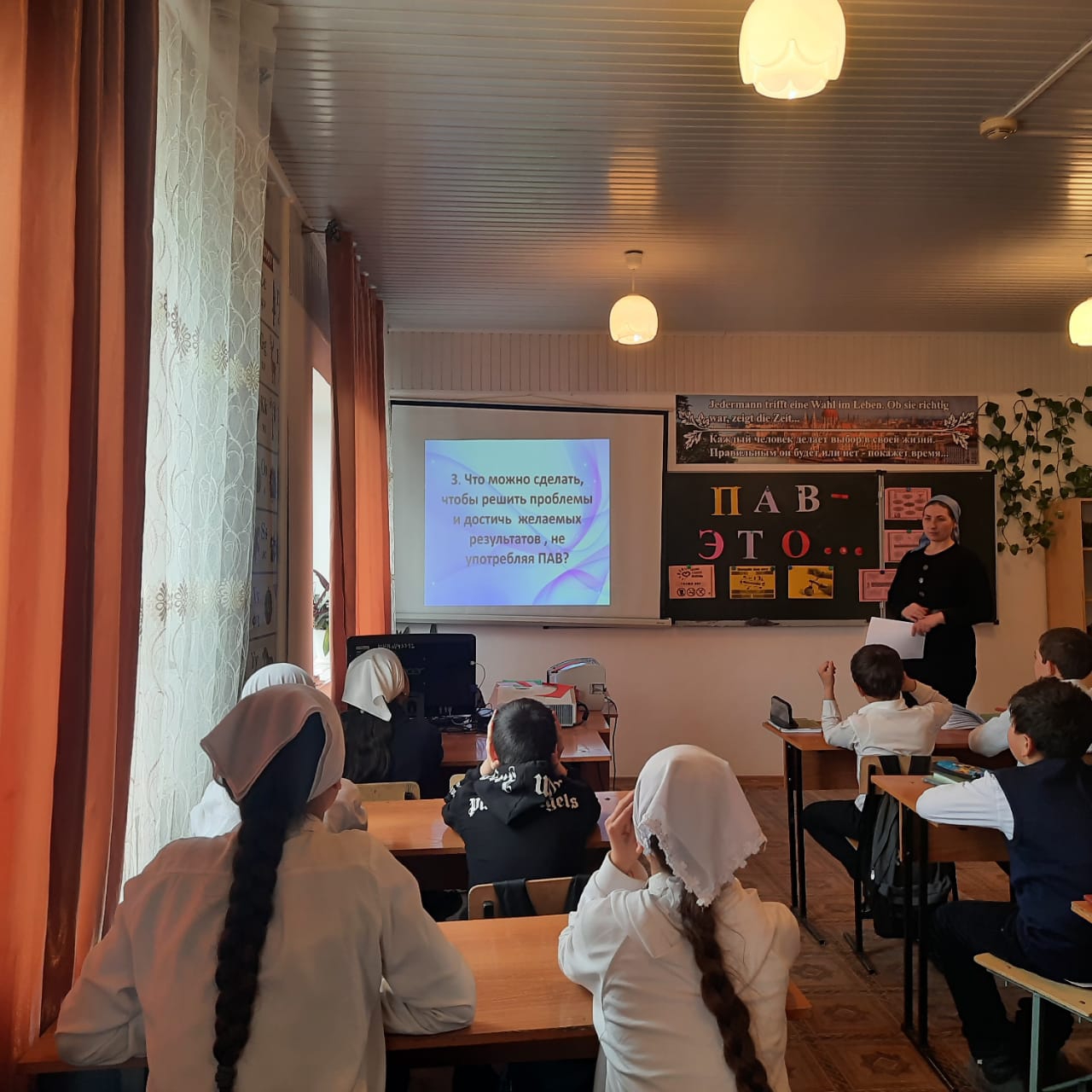 Социальный педагог МБОУ "Сары-Суйская СОШ" Новикова Марина Александровна провела беседу с учащимися 6 "а" класса на тему : "ПАВ - это...".