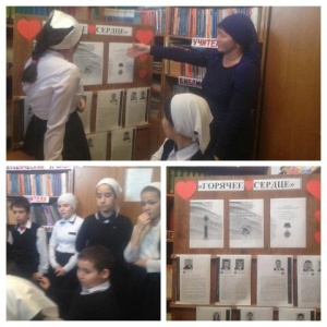16.02.2017Горячее сердце "Рождение еще не дает права называться полноценным человеком - имя человека надо завоевать" это слова поэта Межелайтиса. Именно о таких людях говорится в Почетной книге Горячее сердце 2017. С этих слов начала свой урок - обсуждение библиотекарь Салимгереева Марина Алиевна.. Обсудили несколько историй про героев: это 19-й Абдулхаликов М. из Дагестана, погиб в 2016 году при пожаре. Адоньев - спас маленькую девочку. Горячие сердца всегда рядом. . . Библиотекарь сказала, что они навсегда останутся в нашей памяти и в сердцах ими спасенных.