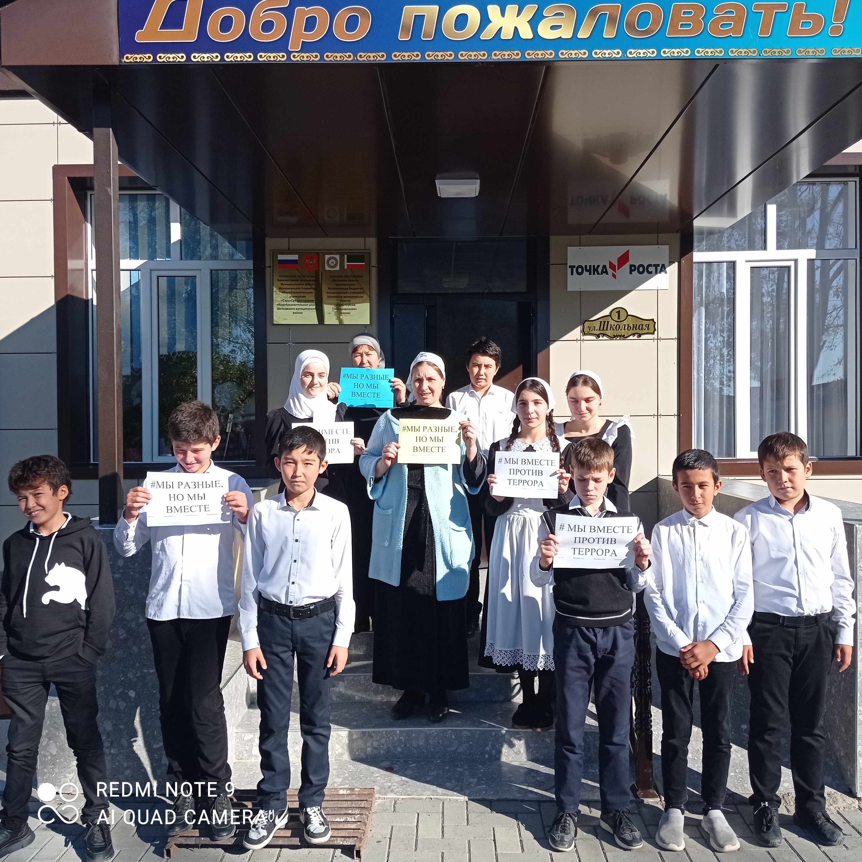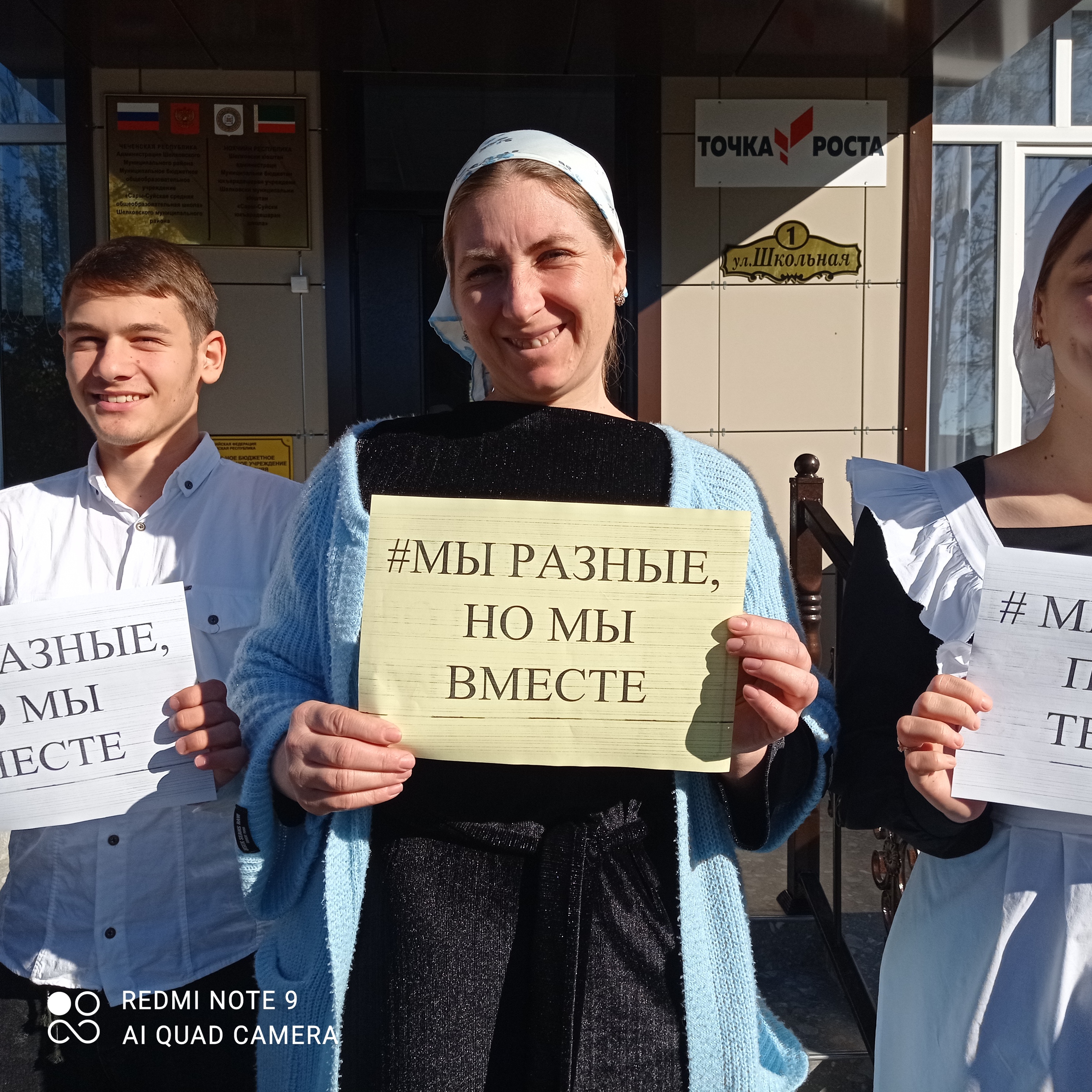 Обучающиеся 10 класса провели флешмоб на тему: "Мы разные, но мы вместе" и "Мы вместе против террора", приуроченный ко Дню народного единства.