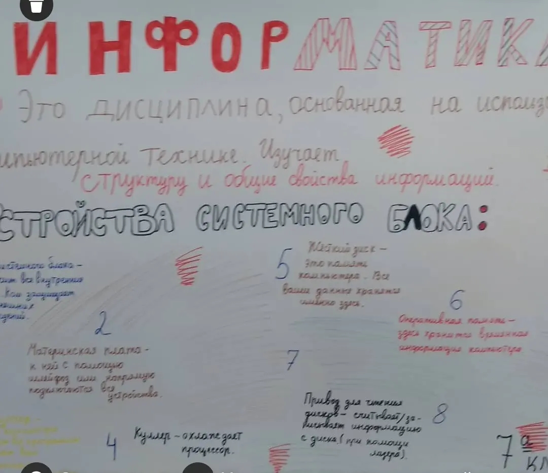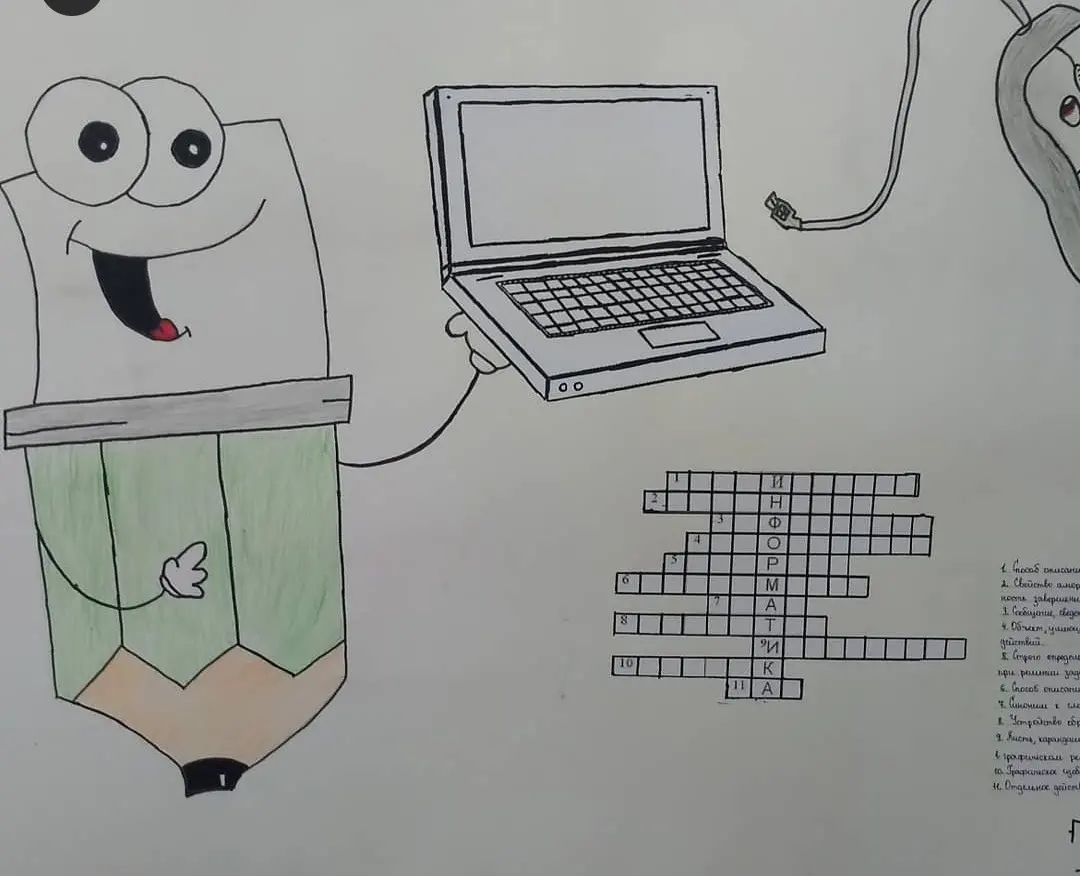 С 14 по 19 ноября в школе проходит неделя математики и информатики, целью которой является привитие любви к этим предметам. Открыл предметную неделю конкурс стенгазет "Интересная наука - информатика". Обучающиеся выбрали для себя наиболее интересную форму для передачи информации. Стенгазеты получились разнообразные по своему содержанию: ребусы, шарады и т.д.