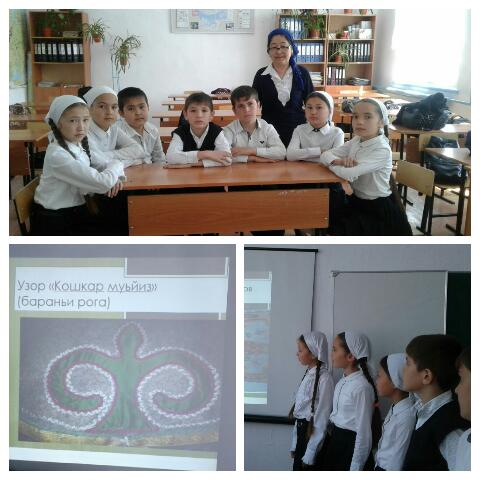 22.04.2017По школе проходит акция "Республиканская Весенняя Неделя добра". Оразманбетова М.Д. провела в 5 б классе урок по краеведению. Она познакомила своих детей с производством войлока ногайцев.. Дети с интересом просмотрели презентацию, узнали как производится войлок, об узорах и их значении...