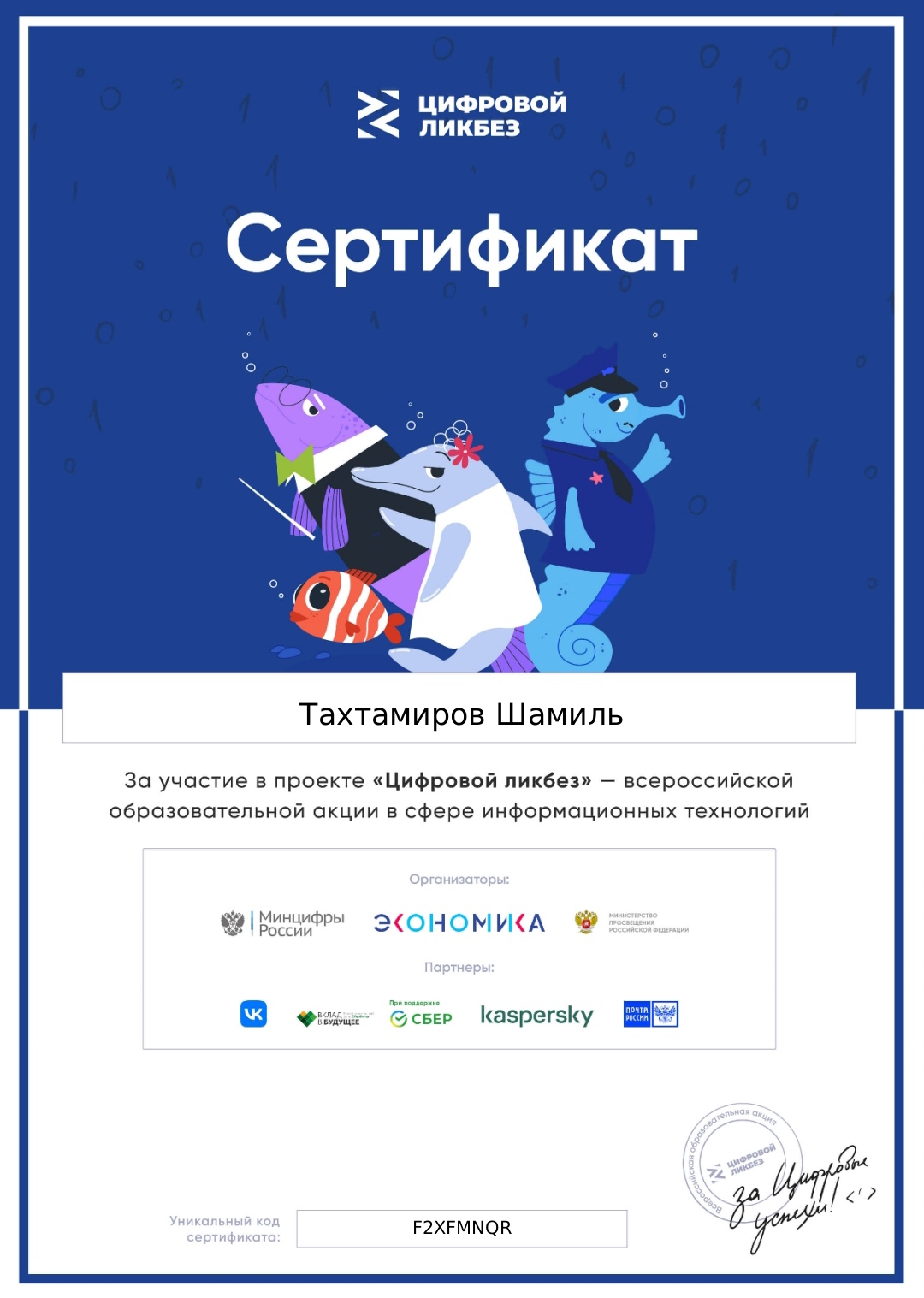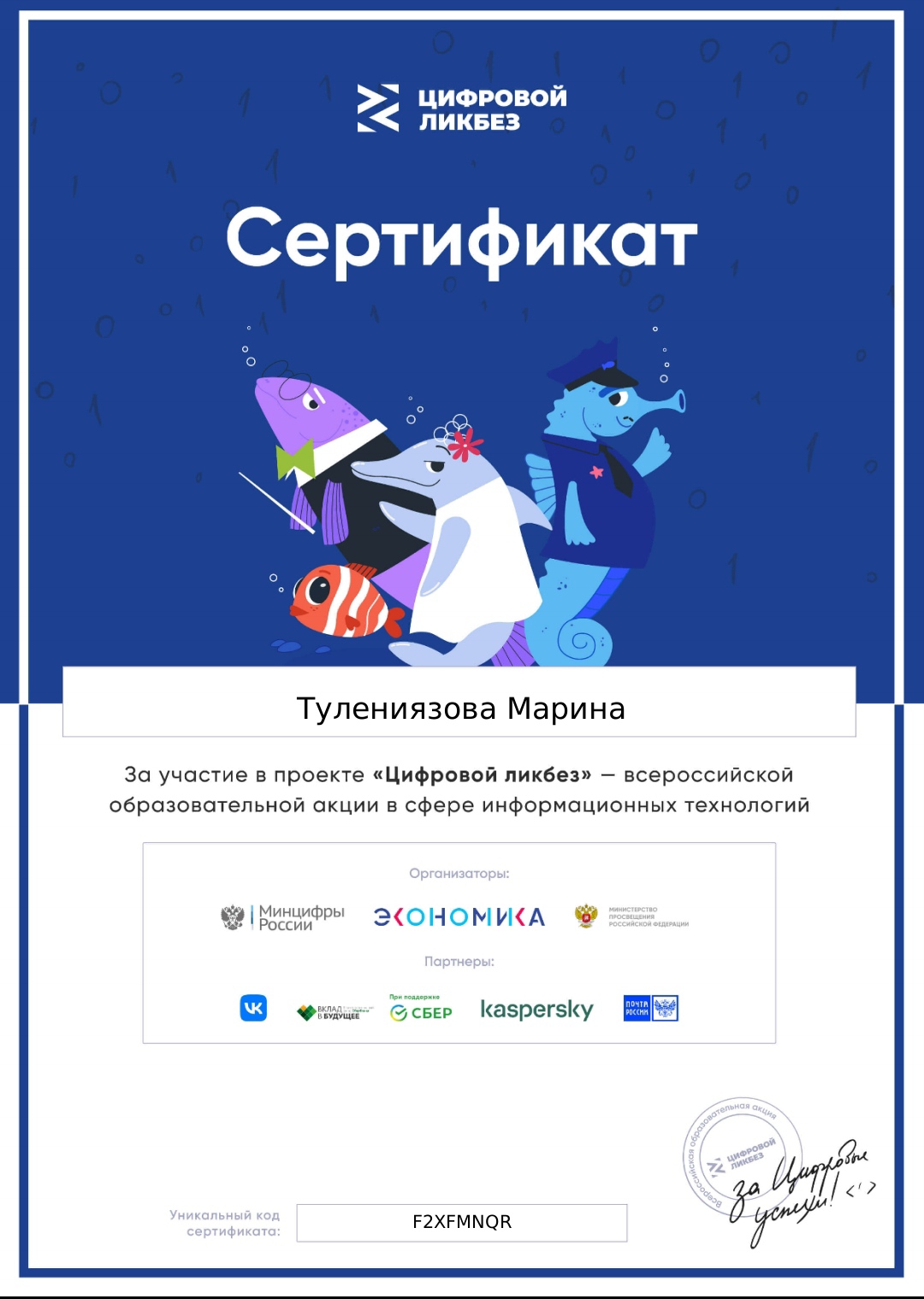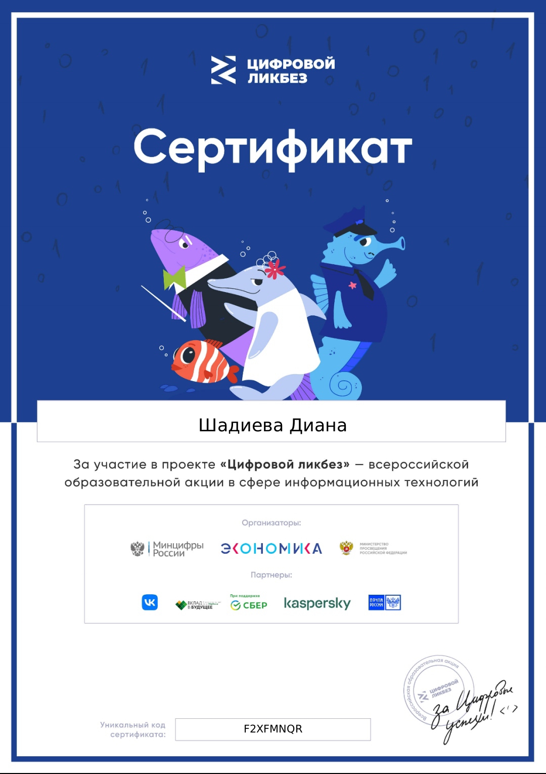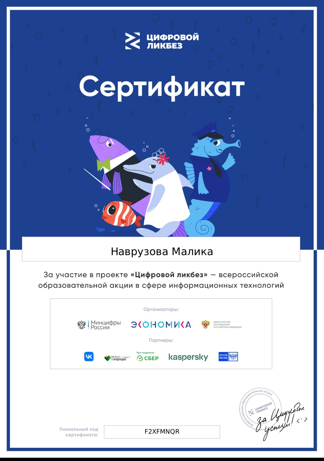 За участие в проекте "Цифровой ликбез" ученики получили именные сертификаты.
