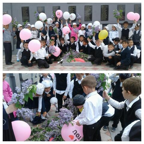 В 1-х классах Ханмурзаева Нелли Явгайтаровна и Койлакаева Зульфия Алибиевна провели беседу о празднике 9 Мая, разучивали песни военных лет, ходили почтить память погибших и там же спели песню "Катюша".