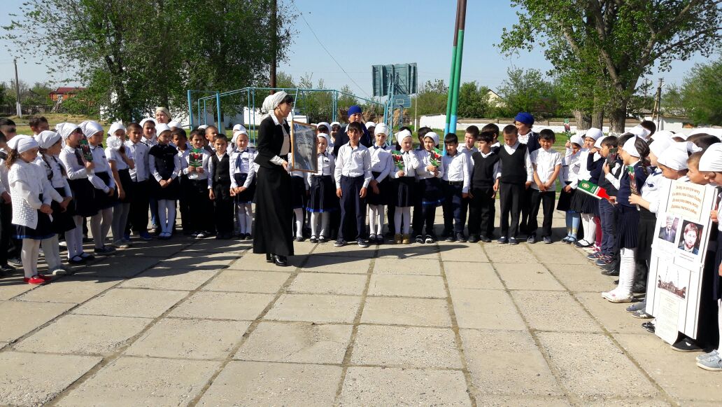 10.05.2017Начальные классы провели линейку ко Дню памяти и скорби Первого Президента ЧР А-Х. Кадырова. Перед обучающимися выступила Р.С., которая рассказала о жизни Кадырова. Дело начатое им продолжил его сын. Ныне действующий Глава ЧР Рамзан Кадыров.