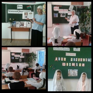 По всем классам проведены классные часы, темы классных часов в соответствии праздничной дате. Вновь на уроках говорили о роли чеченской женщины в семье и обществе.
