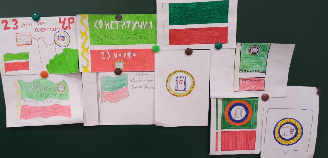 Работы учащихся 6 "а" класса в преддверии Дня Конституции Чеченской Республики.
