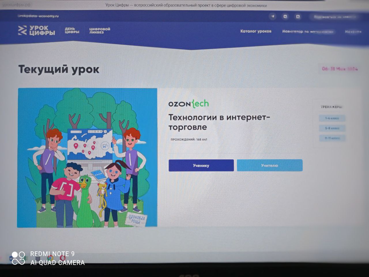Школьники МБОУ "Сары-Суйская СОШ" проходят урок «Цифры» от компании Ozon Tech с 6 по 31 мая на платформе всероссийского образовательного проекта. Занятие посвящено технологиям в интернет-торговле.