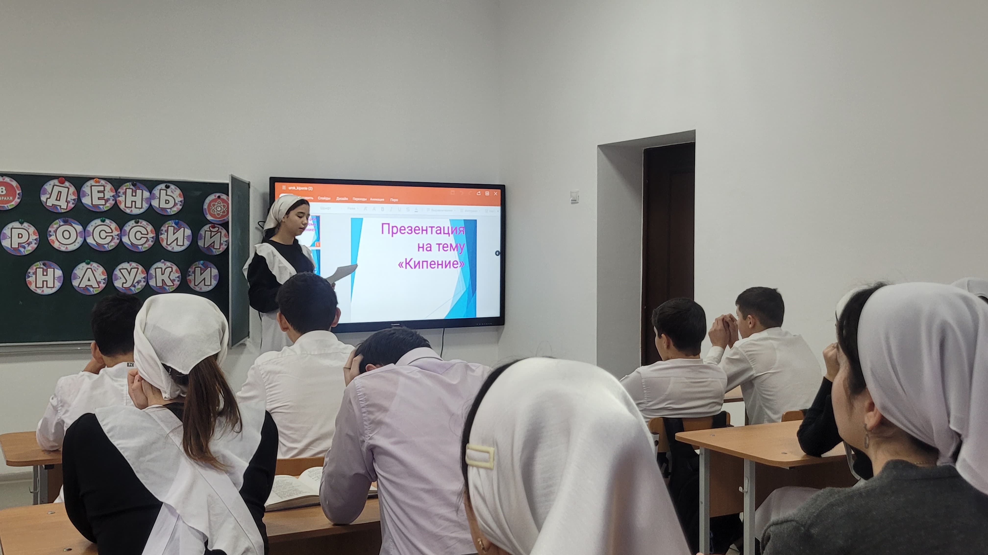 07.02.2025В МБОУ "Сары-Суйская СОШ" сегодня отмечался День российской науки✨️В рамках праздника ученицы 8-го класса представили свои научные проекты: "Кипение" и "Влияние холода на организм человека".Наука – это сила, дающая прогресс, движение, развитие во всех сферах жизни: медицина, образование, экономика, производства. Открытия ученых выводят человечество на новый уровень жизни, повышая ее качество. За свою многовековую историю Россия подарила миру множество гениев.В каждую эпоху сияли яркие имена наших соотечественников: от Ломоносоваи Лобачевского до Ковалевской и Менделеева, от Попова и Мичуринадо Циолковского и Ландау. Работы российских и советских ученых стали неоценимым вкладом в мировую науку и навсегда изменили жизнь человечества.К 275-летию со дня основания Академии было решено учредить праздник «День российской науки», учитывая роль выдающихся открытийи труд великих умов человечества для развития государства и обществав целом, поэтому 7 июня 1999 года Президентом Российской Федерации был подписан Указ № 717 «Об установлении Дня российской науки»,в соответствии с которым в стране был установлен новый профессиональный праздник, который стал отмечаться ежегодно 8 февраля.#НавигаторыДетства#Росдетцентр#оНаукеНД#Наука_в_Действии