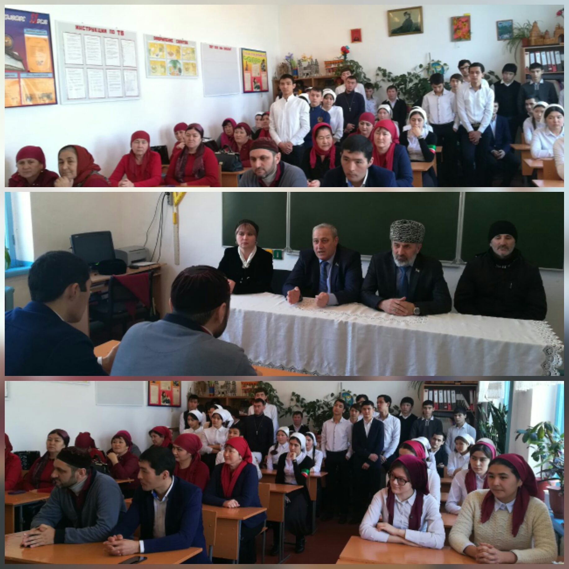 29.01.201829 января в школе состоялась встреча педагогического коллектива и обучающихся с депутатами Парламента ЧР Манцаевым В.Ж. и Демилхановым С.С. В ходе беседы были затронуты вопросы молодежи, об их взглядах в будущее. Коснулись и молодежи, которая легко подвластна экстремистским группировкам. Говорили и о предстоящих выборах, которые будут проходить 18 марта. Встреча проходила в теплой, взаимопонимающей обстановке.