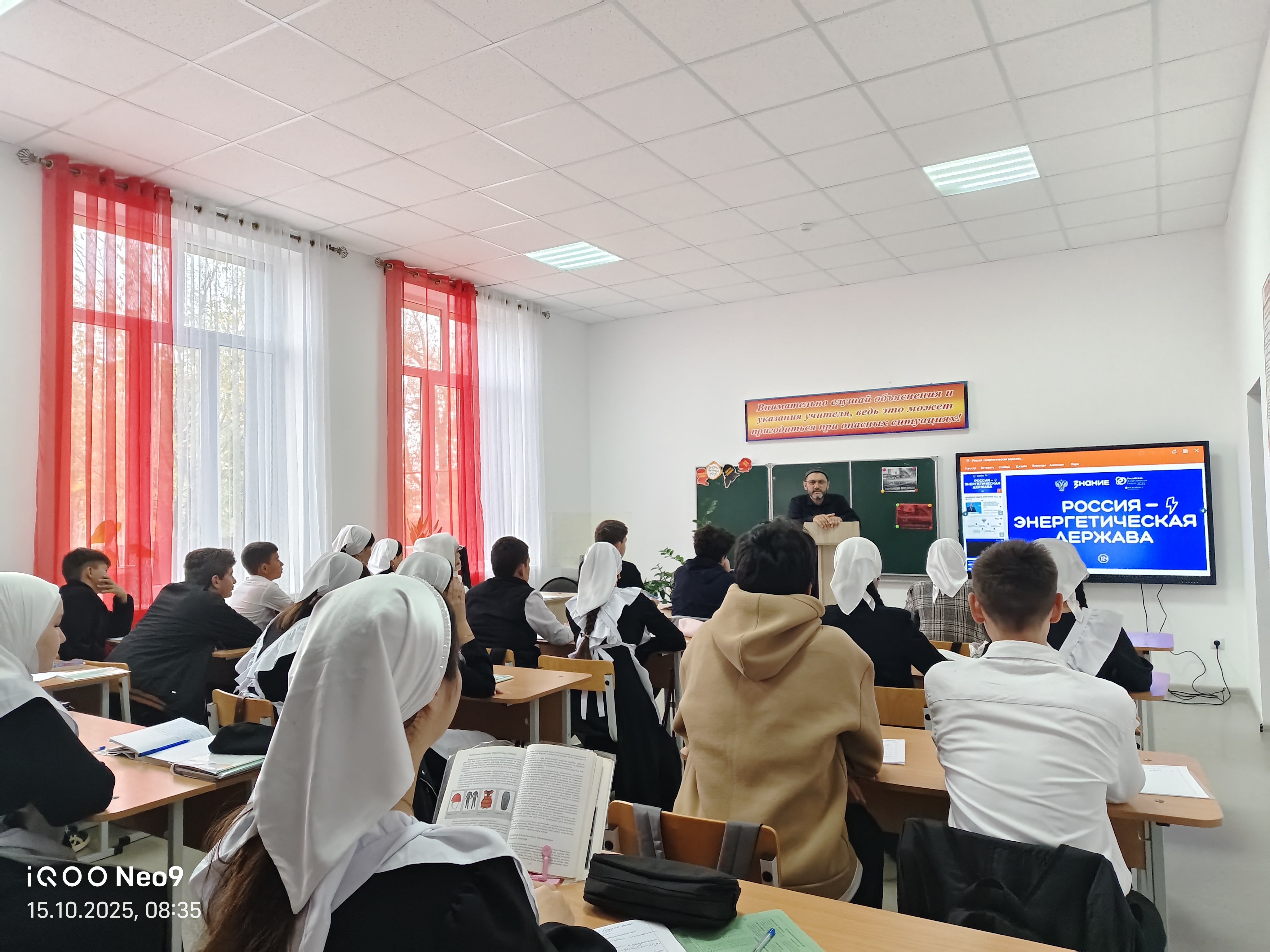 15.10.2025В МБОУ "Сары-Суйская СОШ" проведены мастер-лекции: "Россия - энергетическая держава" в 9-11 классах. Учащиеся узнали о работе энергетической системы страны, о современных технологиях, которые применяются в отраслях топливно-энергетического комплекса, и о том, как развивается российская энергетика сегодня.Ребята активно участвовали в викторине, задавали вопросы и делились своими впечатлениями. В мероприятии приняли участие более 44 человек, учащиеся 9–11 классов .