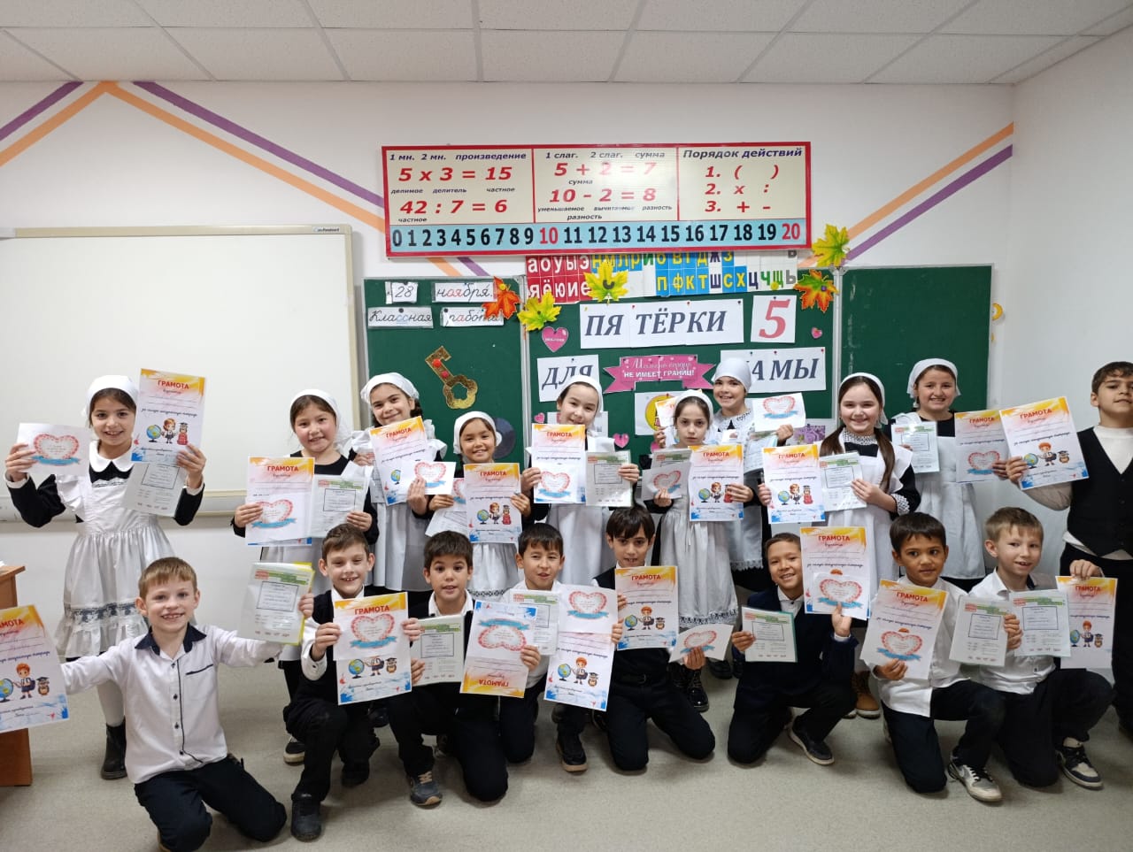 Во 2 классе прошло мероприятие "Акция 5 для Мамы" Дети старались трудились, готовясь к урокам, чтобы получить пятёрки.Детям были вручены грамоты "За самую аккуратную тетрадь" Они рассказали стихи для мам, спели песни.