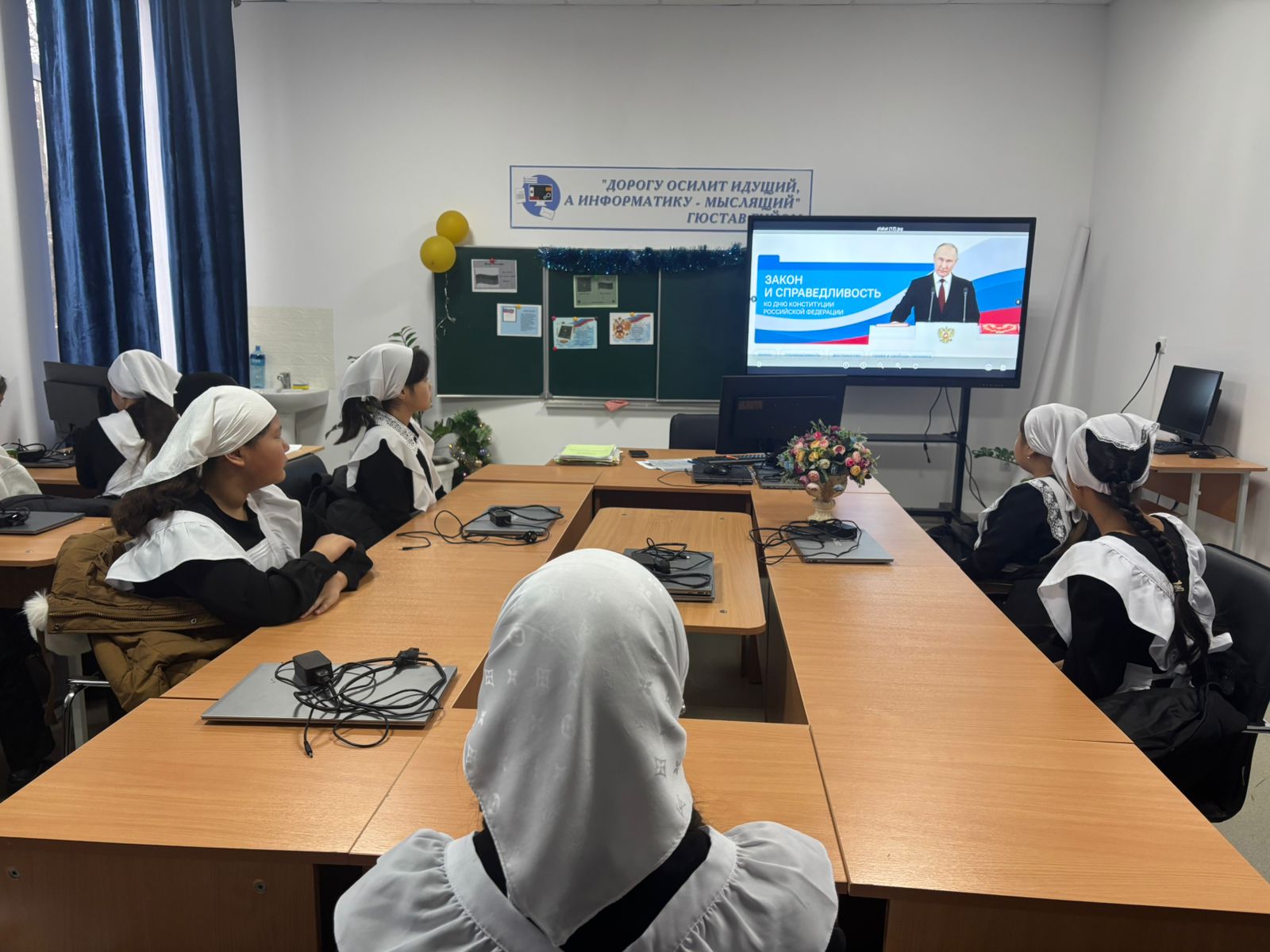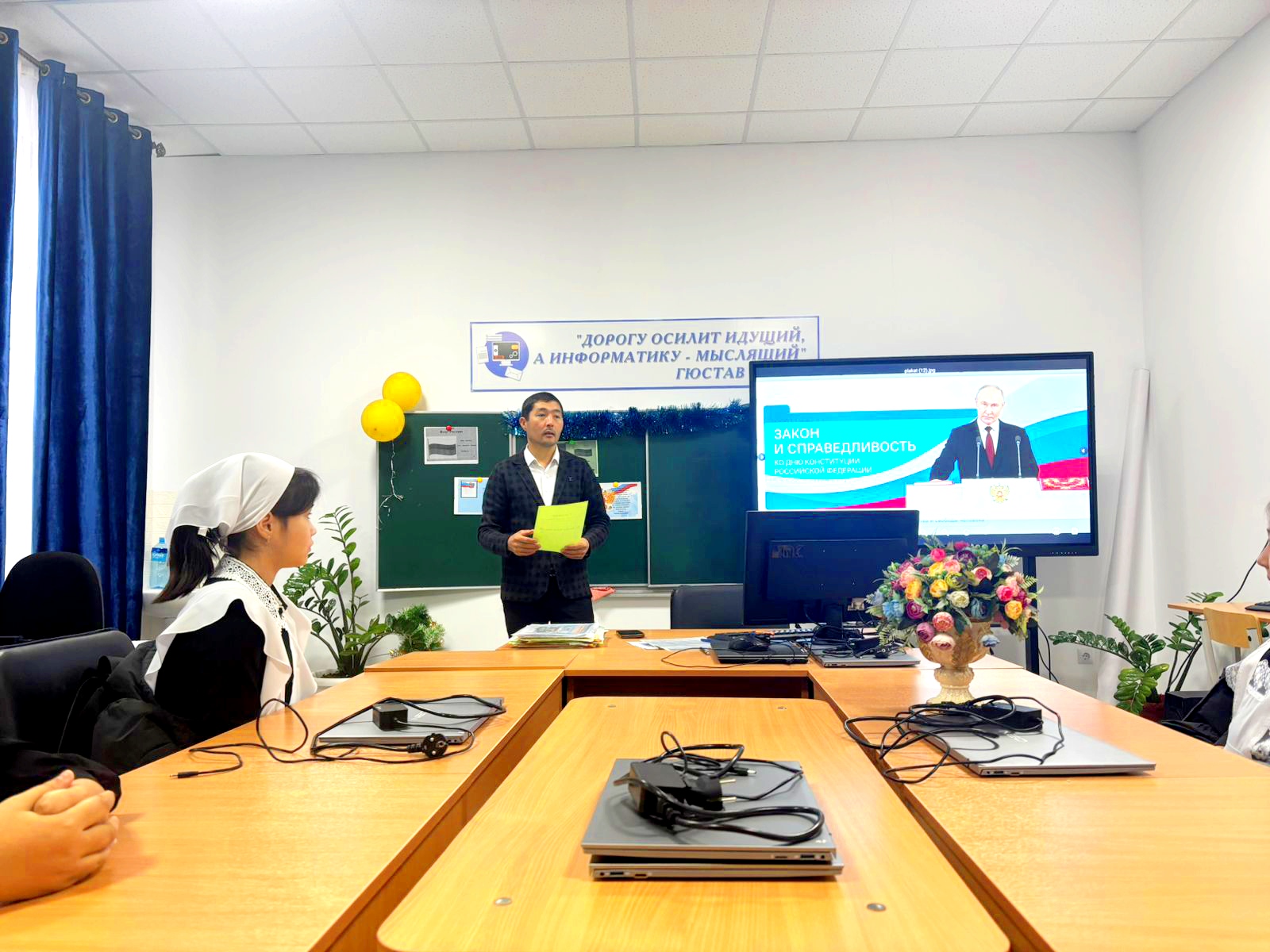 15 декабря в нашей школе прошли очередные занятия «Разговоры о важном». Тема была посвящена «Закону и справедливости» и приурочена ко Дню Конституции Российской Федерации.