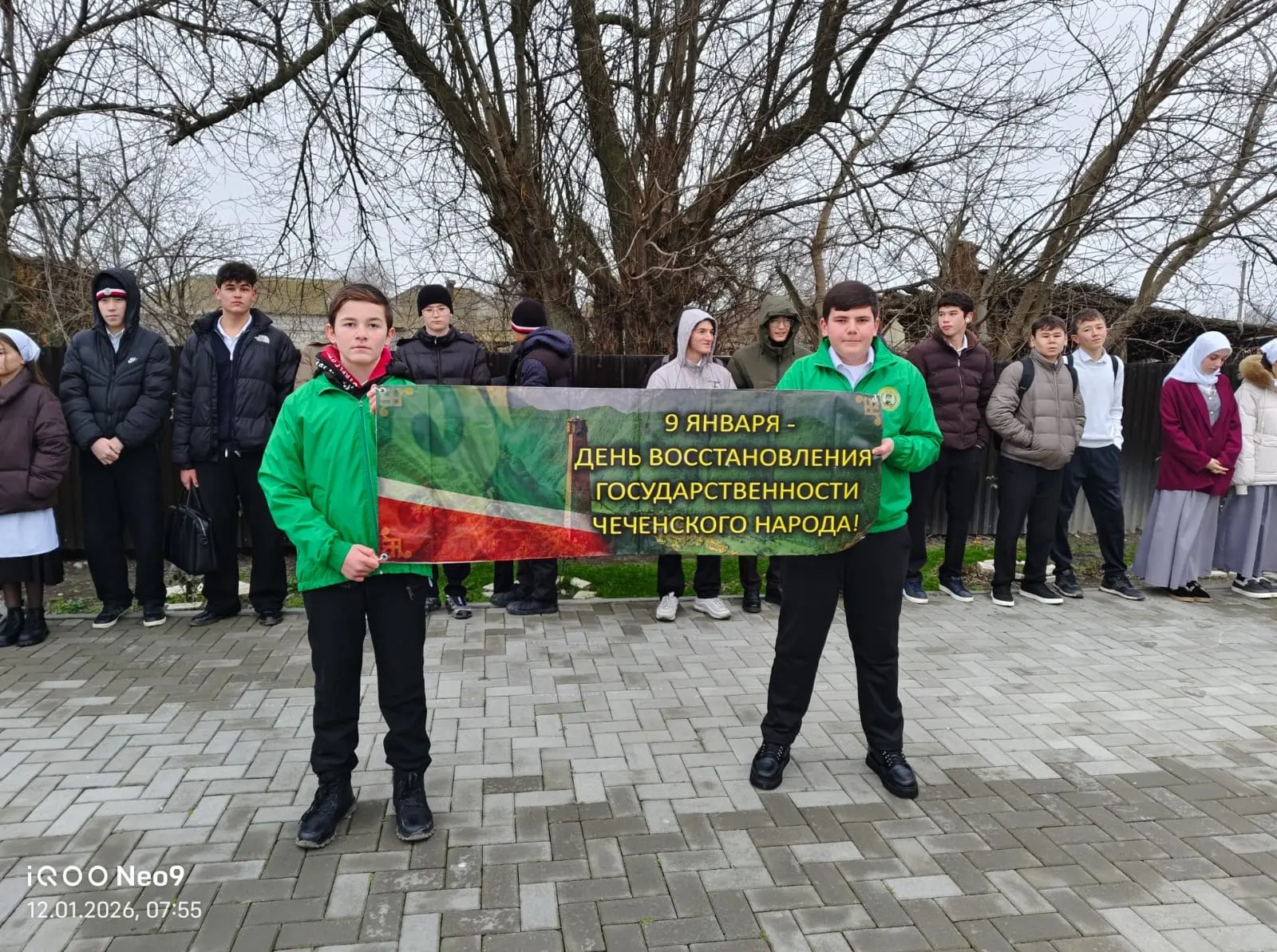 Общешкольная линейка, приуроченная Дню восстановления государственности чеченского народа.