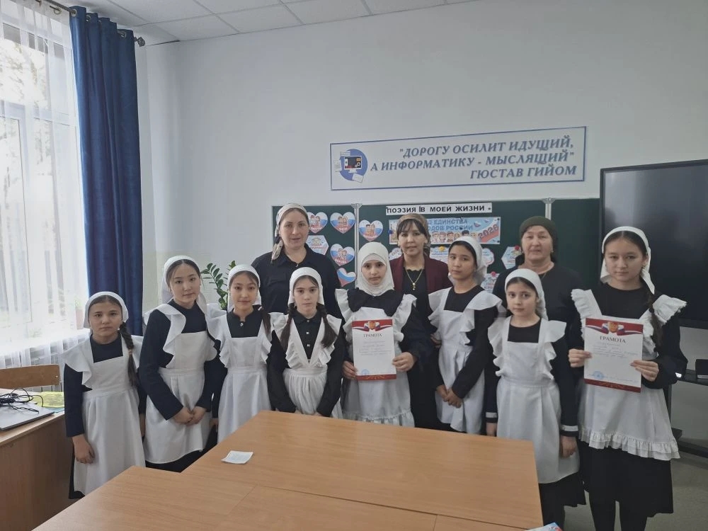 18.03.2026Библиотекарь МБОУ «Сары-Суйская СОШ» Салимгереева М .А. провела конкурс чтецов, посвященный к Всемирному дню Поэзии. Конкурс приурочили к Дню народного единства. Так как 2026 год объявлен Годом Народного единства. Победители были награждены Почетными грамотами.