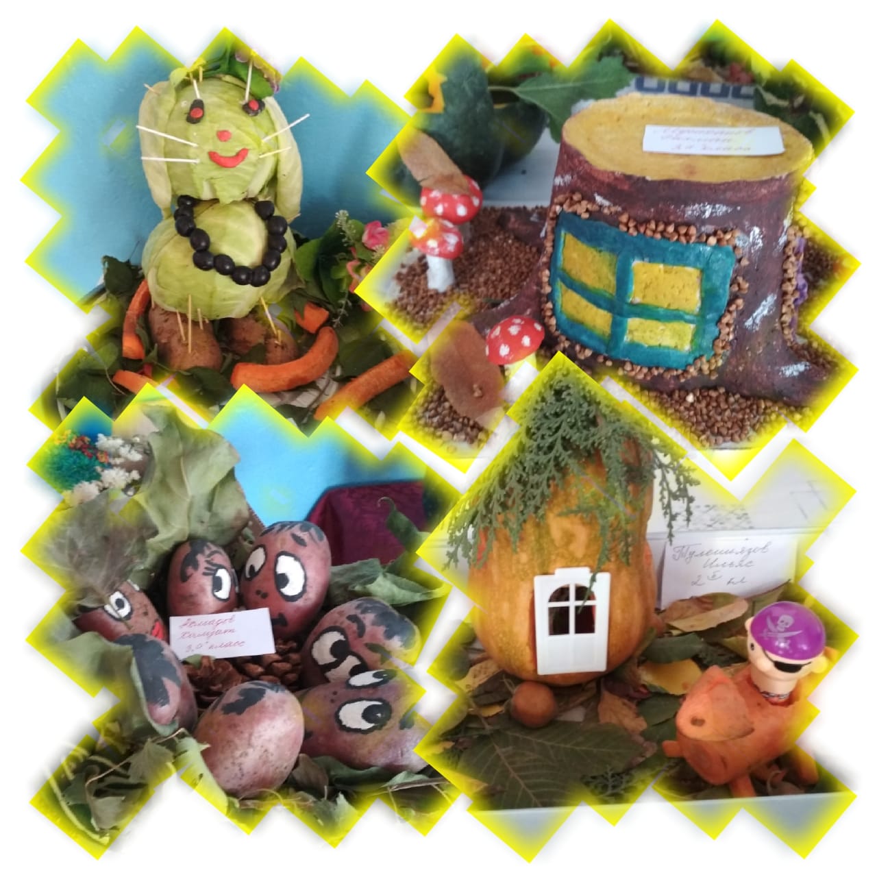 В фойе школы прошла выставка детских поделок "Дары осени".