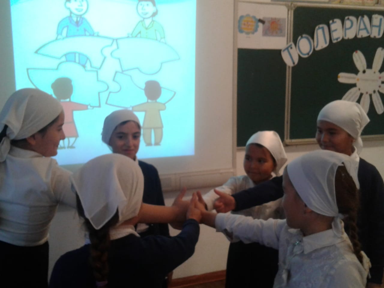 16.11.201816 ноября в школе был объявлен День Толерантности. Во всех классах прошли тематические классные часы. В начальных классах обучающихся познакомили с понятием толерантность, с историей её появления, с чертами присущими толерантному человеку, узнали значение этого слова в разных странах мира. Итогом классного часа в 3 «а» классе стал собранный ребятами цветок толерантности, на котором они указали основные черты, присущие толерантной личности. Очень интересно подвел, итог дня толерантности 4 «б» класс . Читали стихи, игра «Мы разные, но мы вместе».