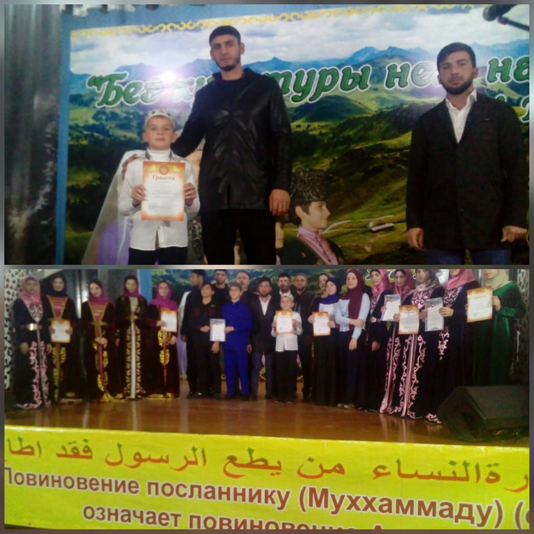 19 ноября Ахмадов Иса, ученик 6 класса принял участие в районном конкурсе нашидов "Милость для миров!, посвященном Дню рождения Пророка Мухаммада (С.А.С.) и занял 1 место.