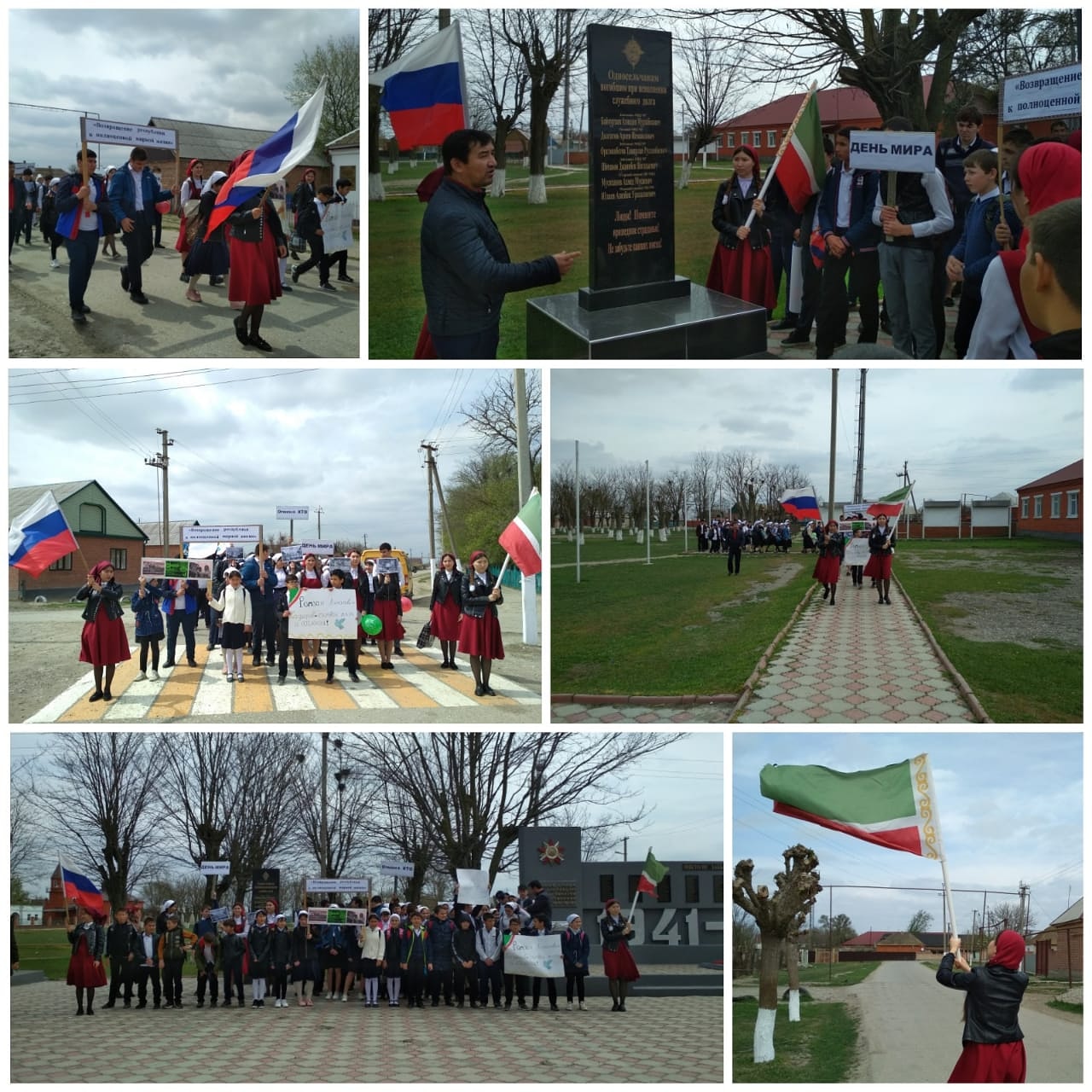 16.04.2019С целью формирования патриотического воспитания, любви к Родине, гражданских чувств, формирование понятия о миролюбивой политике. С командой ЕДЮО "Юные Кадыровцы" и обучающимися школы было проведено шествие к обелиску односельчанам, погибшим при исполнении служебного долга, приуроченное Дню отмены КТО.